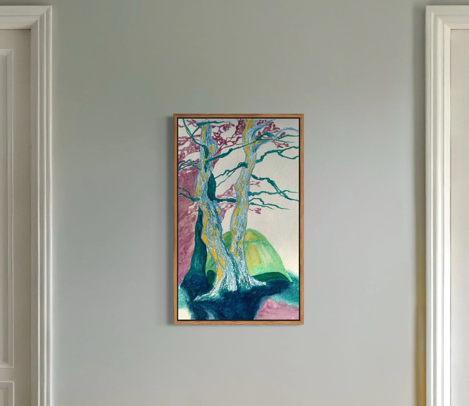 2025 Golden Rain, original oil painting on canvas, 140 x 160 cm Contact Rosanna “Can a tent be a home? And if I take a tent into the wild, do I make it a garden? “And the small owl sings like an alarm clock. And the darkness is overwhelming. My headtorch light catches the spider just in time. Another night in paradise.”